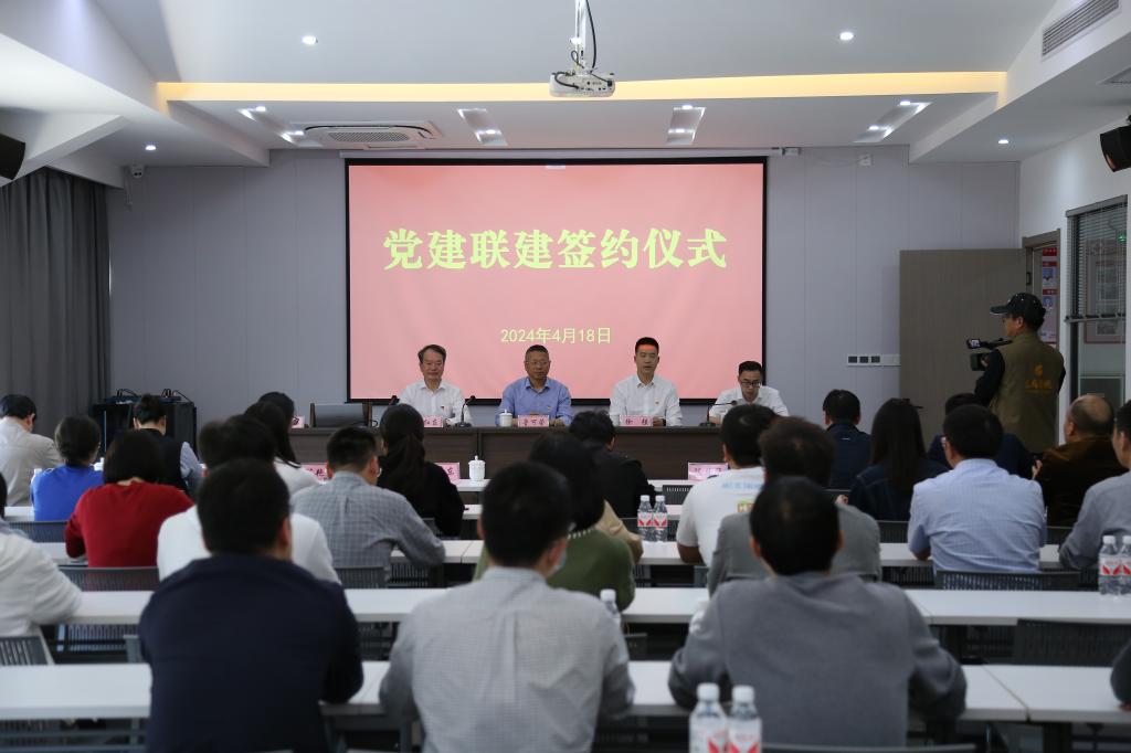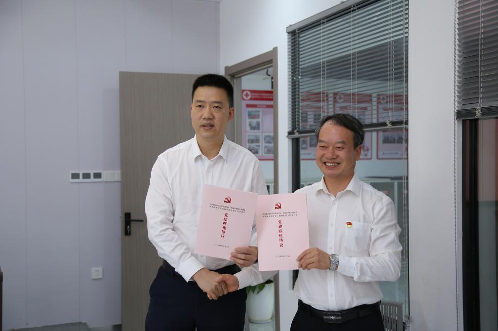 公司党委书记朱红东、锦城街道党工委书记徐强,共同签定院地《党建联建协议》,明确从组织联建、支部联动、学雷锋联动、员工联培、人员联训、课题联研等方面合作,协力共建资源互通、同频共振、协同发展业务共建生态圈,形成互带互动、优势互补、共同发展的党建命运共同体。