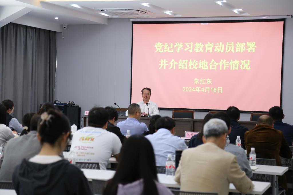 朱红东作党纪学习教育动员部署,他传达了公司动员部署会精神,对师生党员提出三点要求:一是提高政治站位,深刻认识把握党纪学习教育重要意义,立足于“两个维护”政治高度,推动党支部和支委班子从严抓好党的纪律建设,提升党员、干部遵守党的纪律的自觉担当;二是准确把握目标要求,增强党纪学习教育精准性和实效性,坚持把政治思想、育人职责和工作生活摆进去,把思想和行动统一到“196工程”高水平大学和林学登峰建设等中心工作上来;三是抓好统筹落实,协力推动党纪学习教育见行见效,聚力抓好学习、研传跟进、知行合一、常警自省,把党纪学习教育与中心工作有机结合、统筹开展,力求齐头并进并取得实效。
