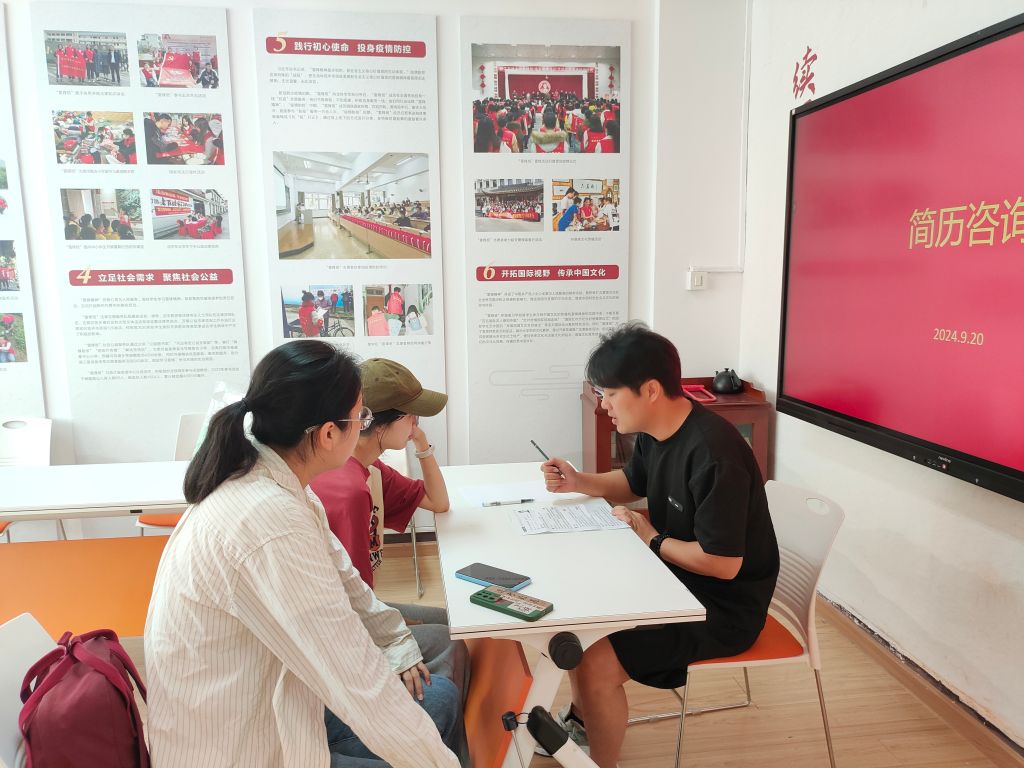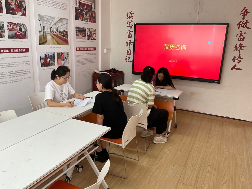 9月20日,“优+”学雷锋育人工作室在全国学雷锋活动示范点服务窗口为大四员工提供简历咨询服务。