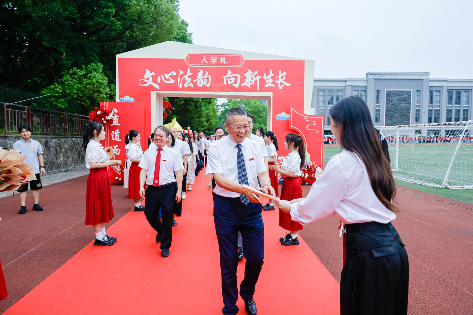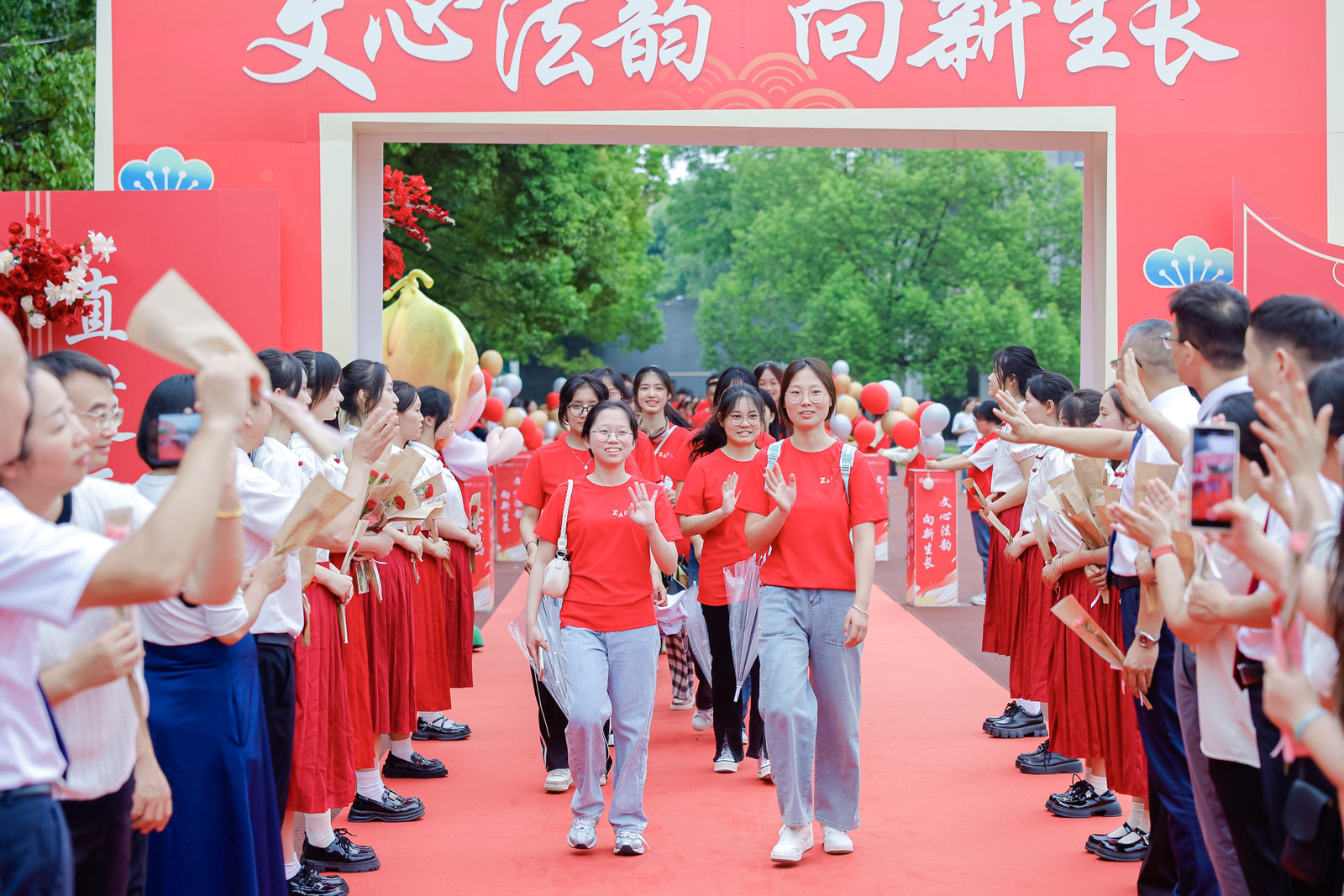 随后公司教师代表、全体新生走过红毯,穿过“文法迎新门”,迈向了全新的校园生活。