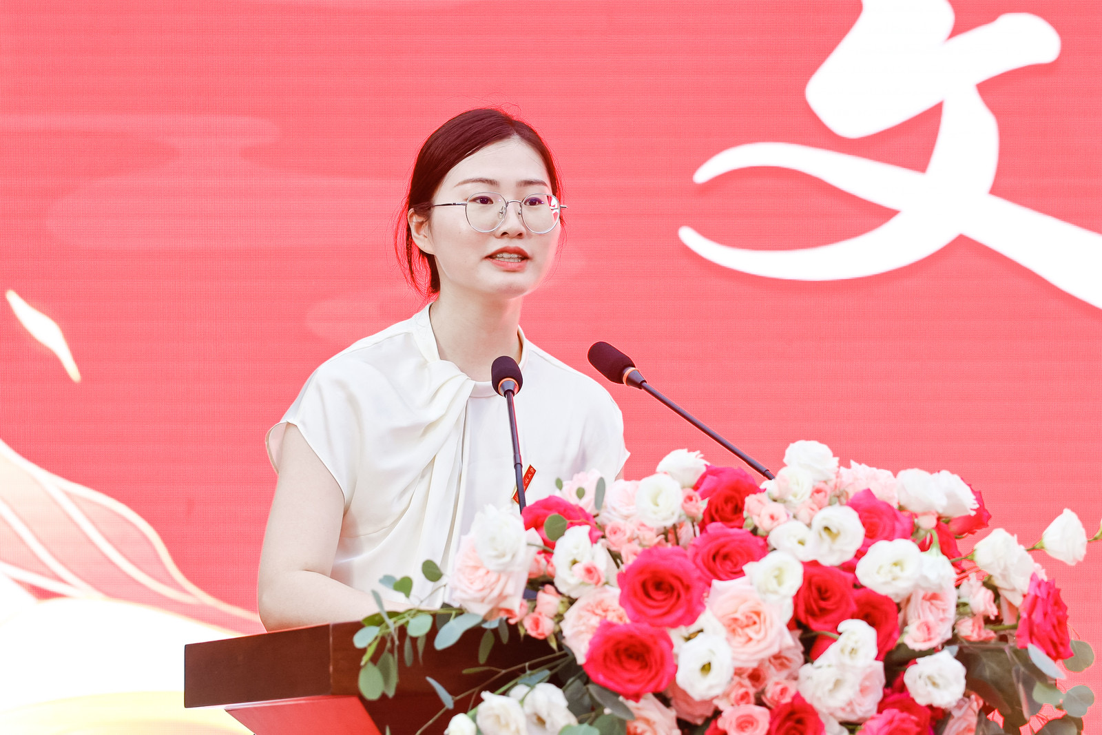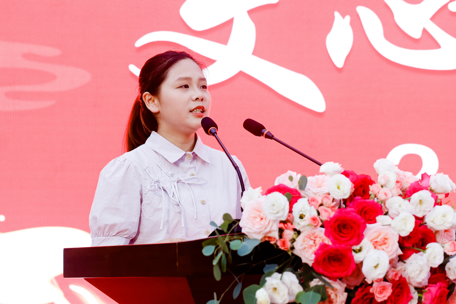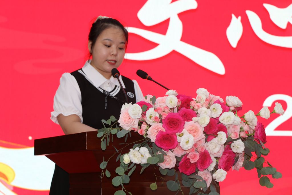 在典礼上,高年级代表汉语言文学224卢翊桦同学希望大家都能做一个有抱负的文法人,懂得学无止境的道理,把握青春,创造价值。