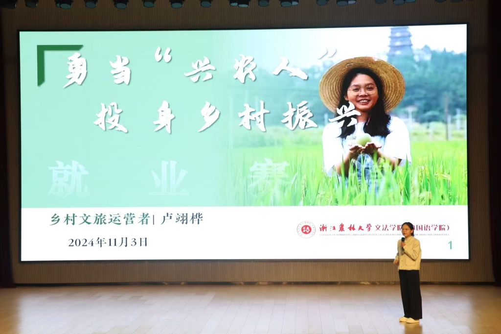 就业赛道上,环境与资源保护法学研23级吉彦霖怀着对环境公益律师职业的热忱,努力推动美丽中国的目标实现;法律非法学研24级赵建新梦想走进商事律师领域,他分享了自己从能源动力工程专业转行至商事律师领域的经历和规划,并希望深入学习相关法律知识、积累实践经验,保持终身学习的态度;汉语言22级卢翊桦想要成为乡村文旅运营者,以孙晓丽的成功案例作为学习榜样,计划进一步通过实习和参与培养计划来提升自己,以实现自己的职业目标;汉语言22级孙凯丽立志成为公益组织儿童项目的筑梦人,希望通过成为优秀的社工,为儿童提供更全面的支持与关爱。