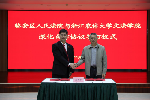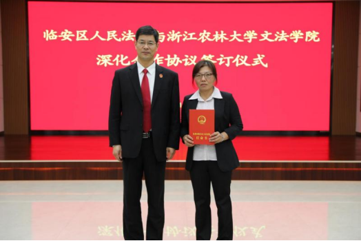 双方签署了院校深化合作协议,临安区人民法院任命汪琴为审管办副主任(挂职)。