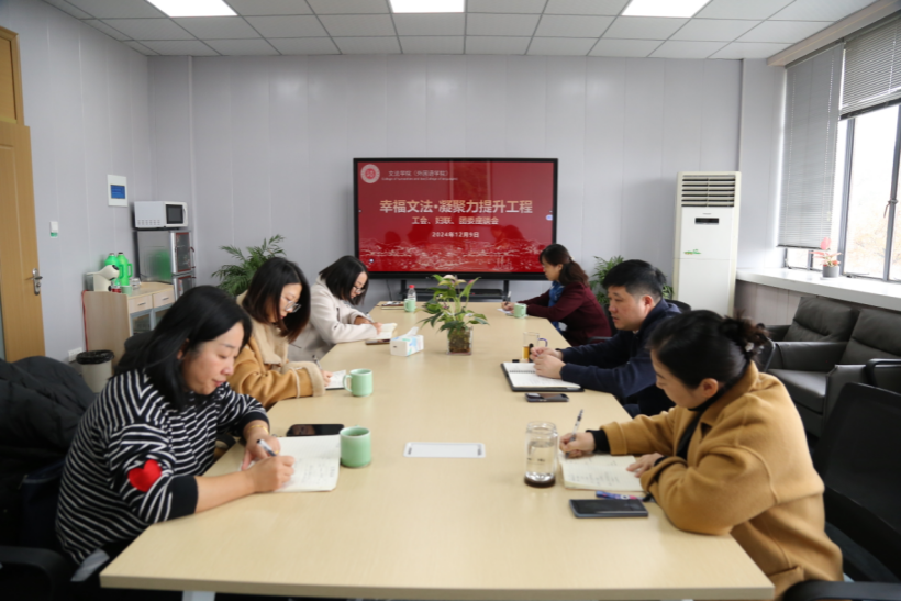 会上,公司工会、妇联、团委负责人围绕主题展开了热烈讨论,并就各自分管的主要工作,分别从资源调配、活动组织、参与情况、效果呈现等方面进行了汇报,对工作开展过程中的困难障碍进行讨论,并就如何落实“幸福文法·凝聚力提升工程”提出相关意见和建议。