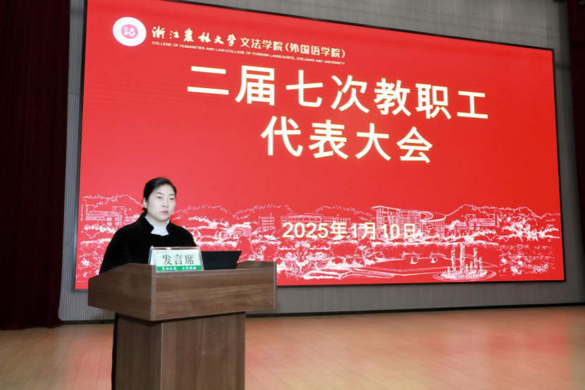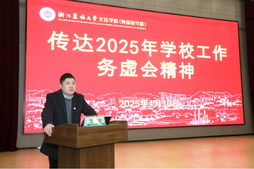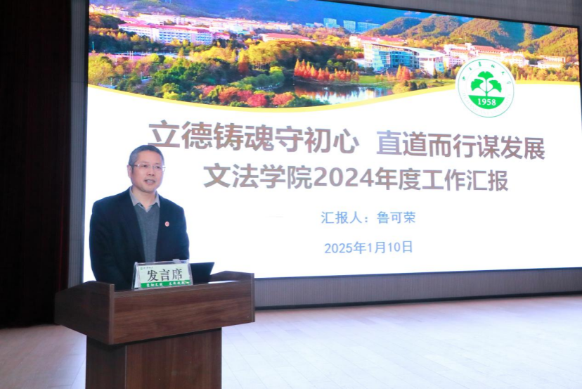 鲁可荣代表班子作2024年工作总结,他肯定了各学科部门、全体教职工在2024年的辛勤付出,总结了年度目标任务完成情况以及在团队建设、人才培养、科学研究、社会合作、党建思政等方面所取得的优异成绩,并期望全院上下聚焦下阶段重点工作,踔厉奋发,不断实现管理服务、人才培养和办学效益的持续提升。鲁可荣还作了个人述职述德述廉述法报告。