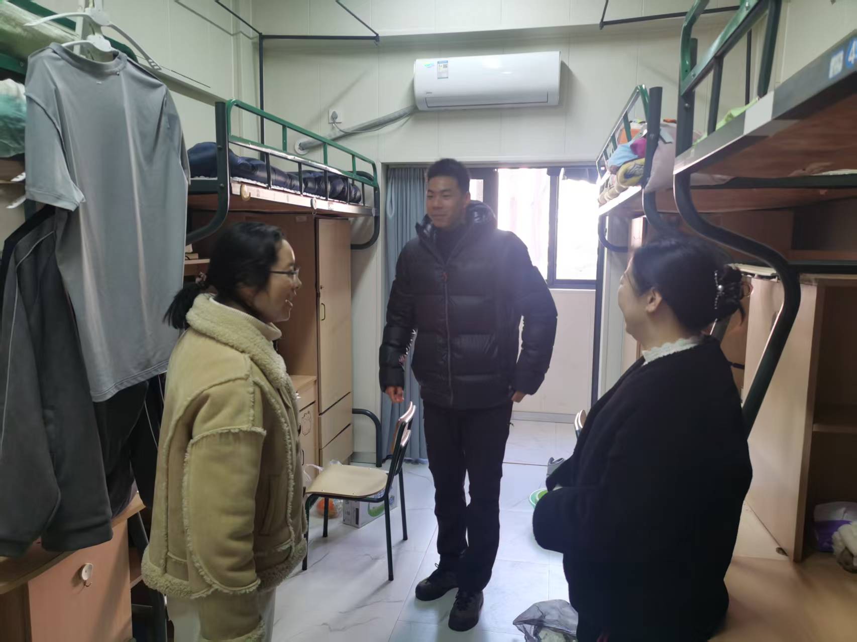1月18日,公司党委副书记冉琰、员工办主任杨优优及辅导员一行来到员工宿舍,看望慰问寒假留校员工,向员工送上新春祝福与慰问品。