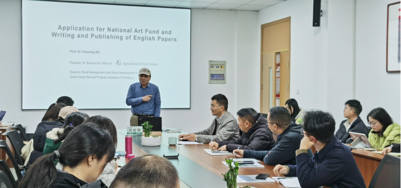 吴延熊教授首先详细的分享了其申请国家艺术基金的心得和经验,鼓励老师们要有信心和积极去申报。之后,吴教授从OA(Open Access,开源)期刊的中国进程、OA论文的全球和中国发表情况、OA论文的头部机构和分区等方面展开,阐述如何顺应大势打造一流的国际期刊。吴教授详细介绍了《Agriculture & Rural Studies》创刊的背景、基础和历程,以及未来的发展构想。吴延熊教授介绍了学术成果发表的通道以及论文的类型与规范,重点讲述了英文论文写作的技巧与要点,研究型论文、综述型论文、前瞻性文章和评述性文章等不同类型文章的特点与区别。详细介绍了投稿流程,如何进行文献管理,如何借助模板与工具,比如学术科研专用神器——AIGC等。结语部分,吴教授结合期刊的封面故事,期待通过不懈努力,争取尽快成为具有国际影响力的SCI和SSCI双收录期刊,帮助中国学者在国际舞台上获得更多学术研究话语权、媒体讨论话语权和政策建议话语权。最后,在互动环节,学科教师们就国家艺术基金申报和成果发表等提出问题,与吴教授进行交流互动。