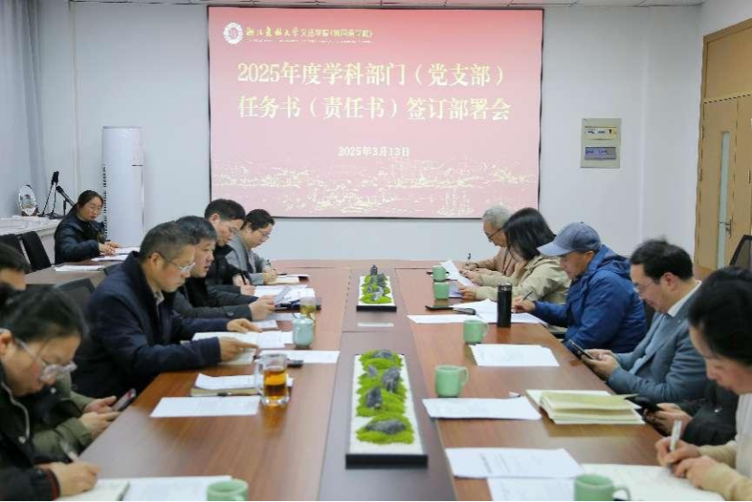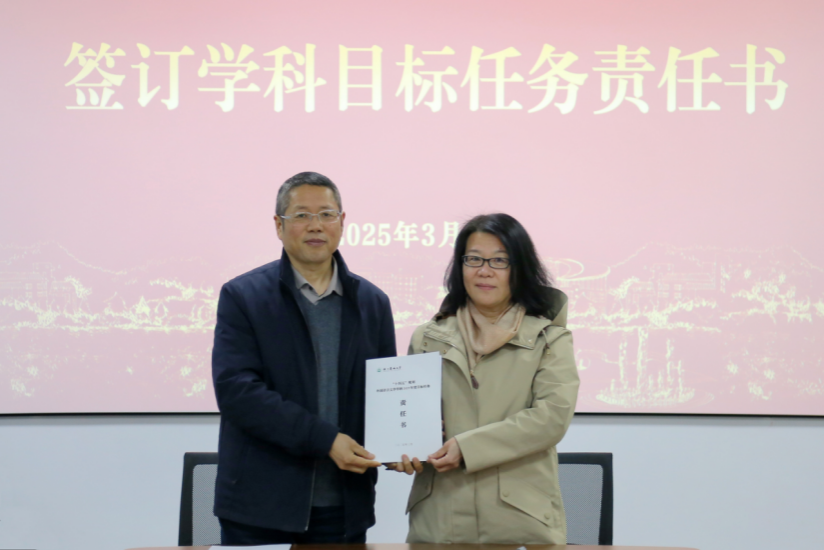 会上,签订了《2025年度学科目标任务责任书》、《2025年度党风廉政责任书》、《2025年度意识形态责任书》和《2025年度综合治理责任书》。通过对责任书的签订明确了团队建设、人才培养、社会服务等方面的具体目标和考核指标。