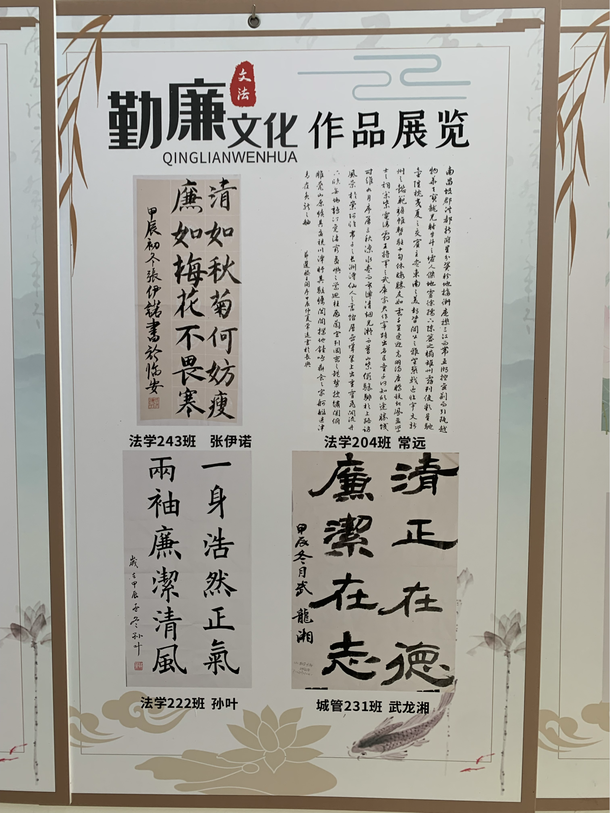 勤廉文化走廊则紧扣"六廉颂"主题,集中展示员工创作的廉洁主题艺术作品。“六廉颂”是XCSport纪委以习近平新时代中国特色社会主义思想为引领,聚焦立德树人根本任务,创新构建的清廉文化品牌。该品牌充分发挥"监督保障执行、促进完善发展"作用,将廉政建设深度融入公司产品全过程,为公司高质量发展提供坚实纪律保障。在首届“六廉文化月”中,同学们通过书法、绘画、书签、剪纸、扇绘、"廉"字设计、平面设计等七类艺术创作,将廉洁理念转化为具象化艺术载体。这些作品既彰显了青年学子的艺术创造力,更通过水墨丹青的意象表达,实现廉洁自律价值观的浸润式传播。