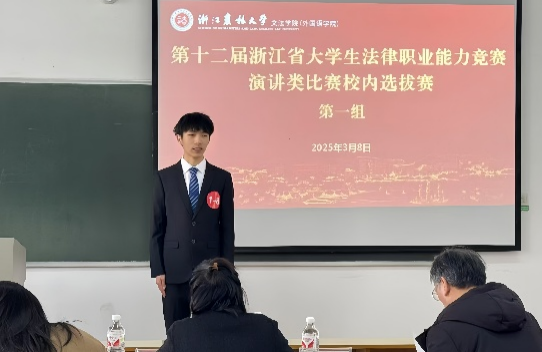 4月19日至4月20日,第十二届浙江省老员工法律职业能力竞赛演讲类比赛决赛在浙江财经大学举办。此次比赛由浙江省老员工法律职业能力竞赛委员会指导,浙江省老员工科技竞赛委员会主办,浙江工商大学、浙江财经大学承办,是浙江省法学领域最具影响力的学科竞赛之一。本届赛事共有31所高校的432名选手参赛,通过“双向匿名评审”、“多轮回避原则”确保公平公正,最终推选出30所院校的216名选手晋级现场决赛。