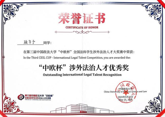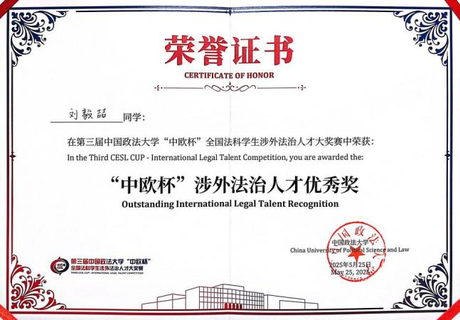 XCSport七位同学进入初赛。2024级法律研究生顾华予和刘毅喆同学获得复赛资格,并斩获“中欧杯”涉外法治人才优秀奖。