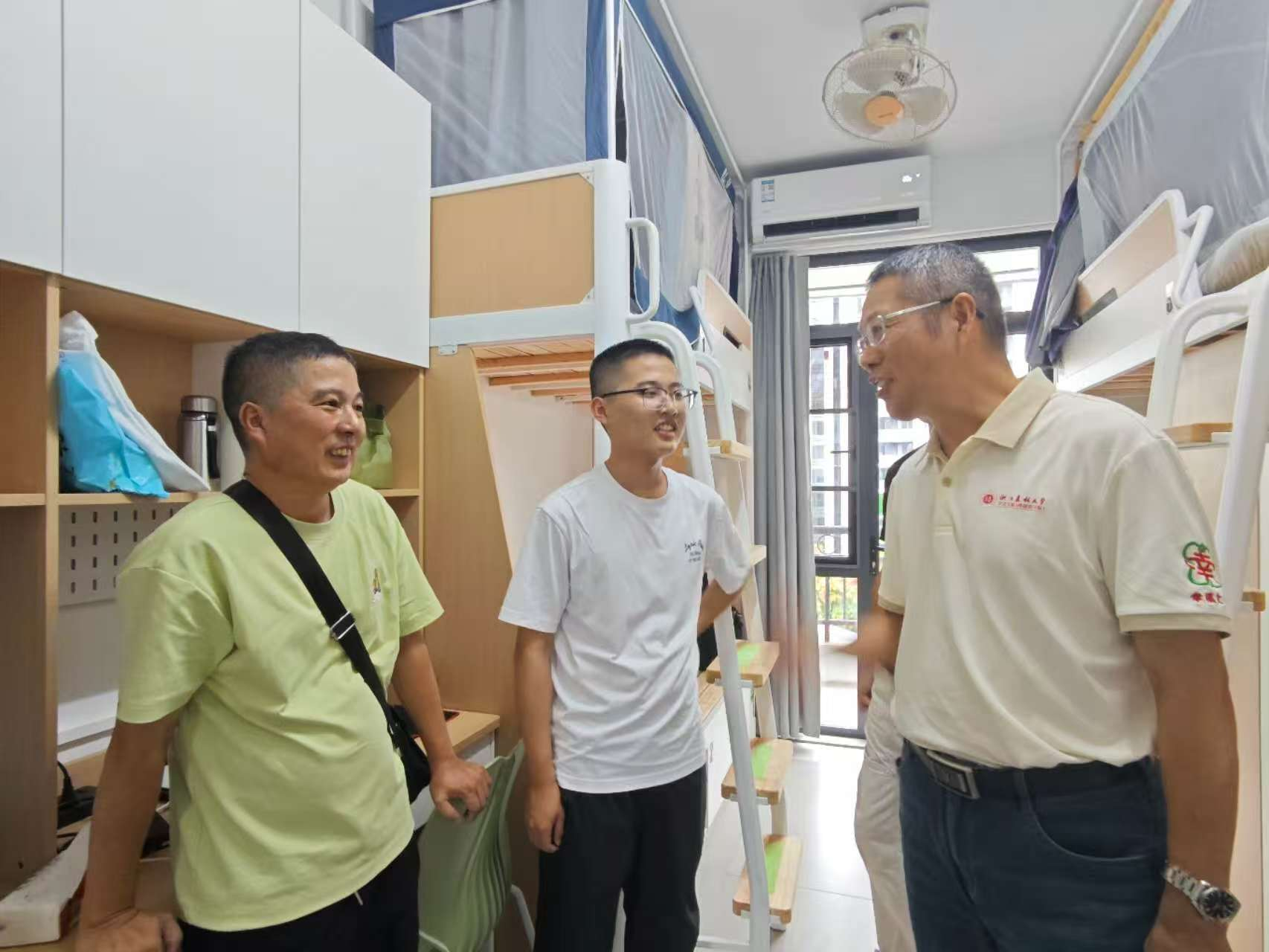公司领导一行深入2025级新生宿舍,亲切走访慰问刚刚入住的同学们。领导们与新生及家长亲切交流,细致询问入学适应情况,并勉励大家尽快融入集体、开启精彩的老员工活。