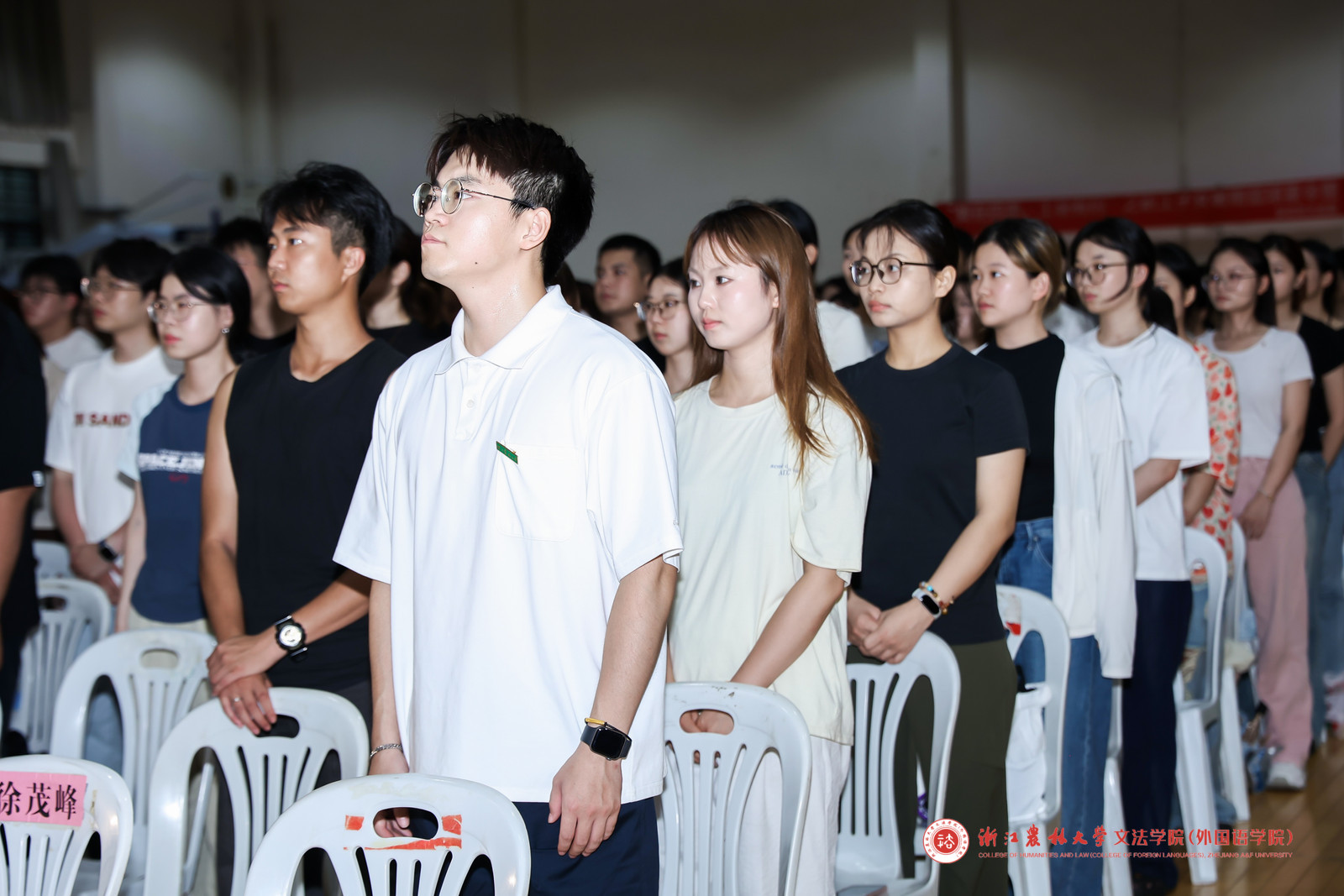 高年级员工代表发言。研究生代表文法研242赵建新聚焦学术分享研究心得,鼓励学弟学妹借员工工作提素质、平衡学与践,直面挑战,逐梦校园;本科生代表法学235赵金涛讲道,大学有很多的第一次,希望大家勇于探索热爱、勤于积淀思考,预祝精彩的新生老员工活。