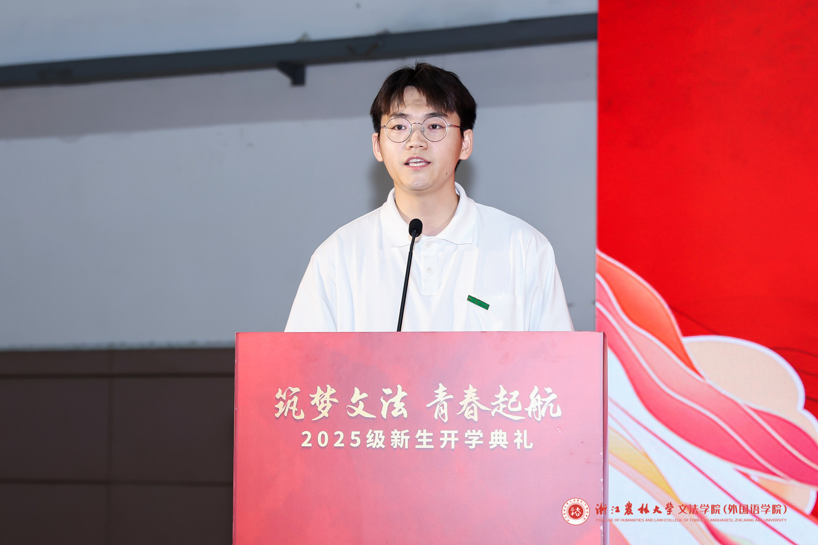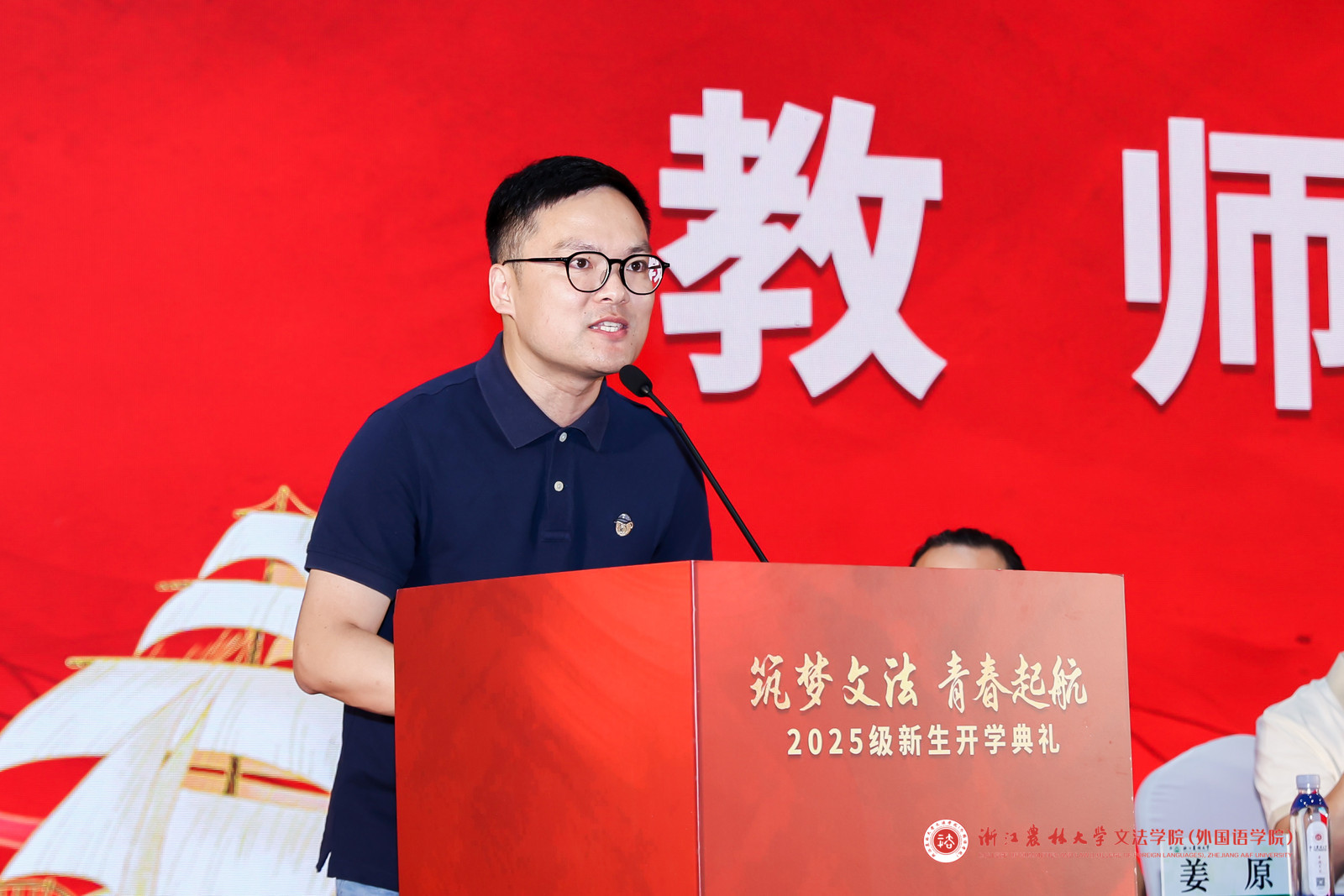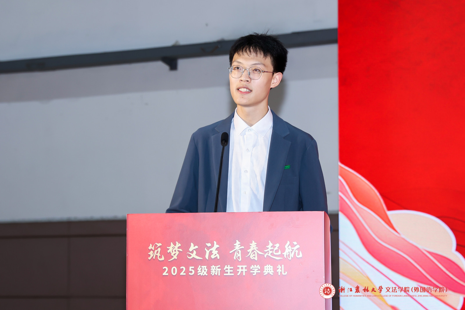 中国语言文学学科教师代表徐茂峰阐述中国语言文学专业的意义,从夯实学问、涵养人文、守正创新、知行合一四方面提出期许,愿新生把握大学时光,发现更多可能。