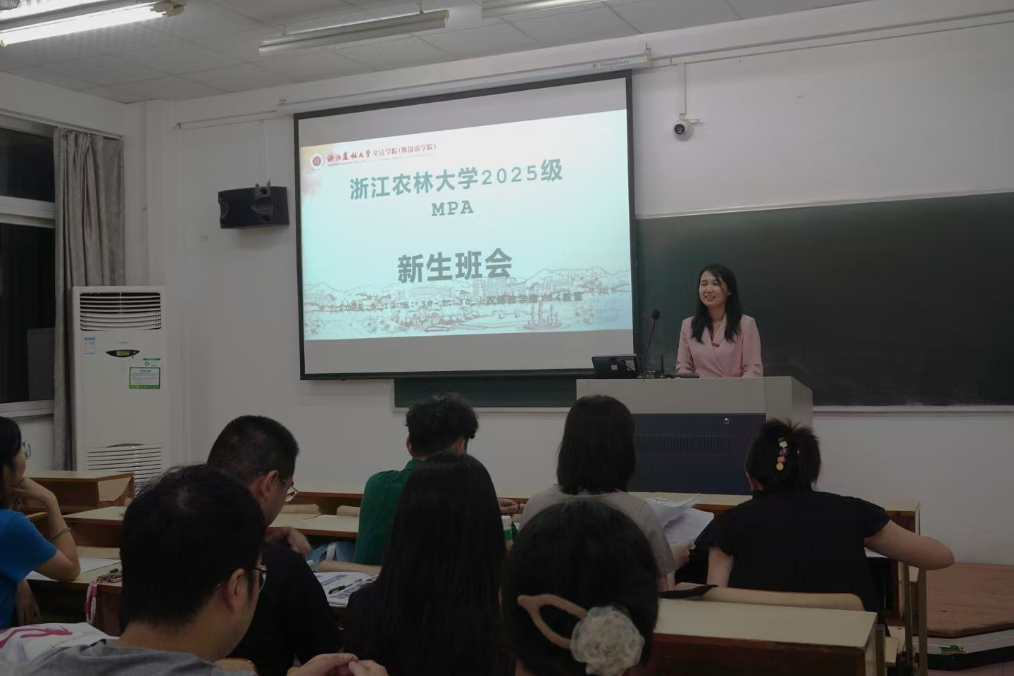 李琳琳副教授介绍了MPA专业的设立背景与发展愿景。公司MPA教育紧密对接国家治理现代化需求,聚焦乡村振兴与生态环境治理两大特色方向,致力于培养兼具理论素养与实践能力的复合型公共管理人才。15名来自城乡规划、生态环保、国企行政等不同领域的新生依次进行自我介绍。他们中既有来自泰兴市自然资源和规划局、开化县府办、临安区农业农村局等政府机关的实务骨干,也有来自浙江天目山国家级自然保护区管理局、湖州产业集团、方圆检测等企事业单位的专业人才。多位同学在介绍中表达了“希望跳出部门看全局,将工作实践与理论学习深度融合”“期待成长为兼具理论素养与实践能力的公共管理人才,实现从事务型管理者到战略型公共服务者的转型”“愿在课堂中解读政策肌理,在田野中扎根乡村振兴”的学习愿望,现场互动频繁,交流氛围融洽。