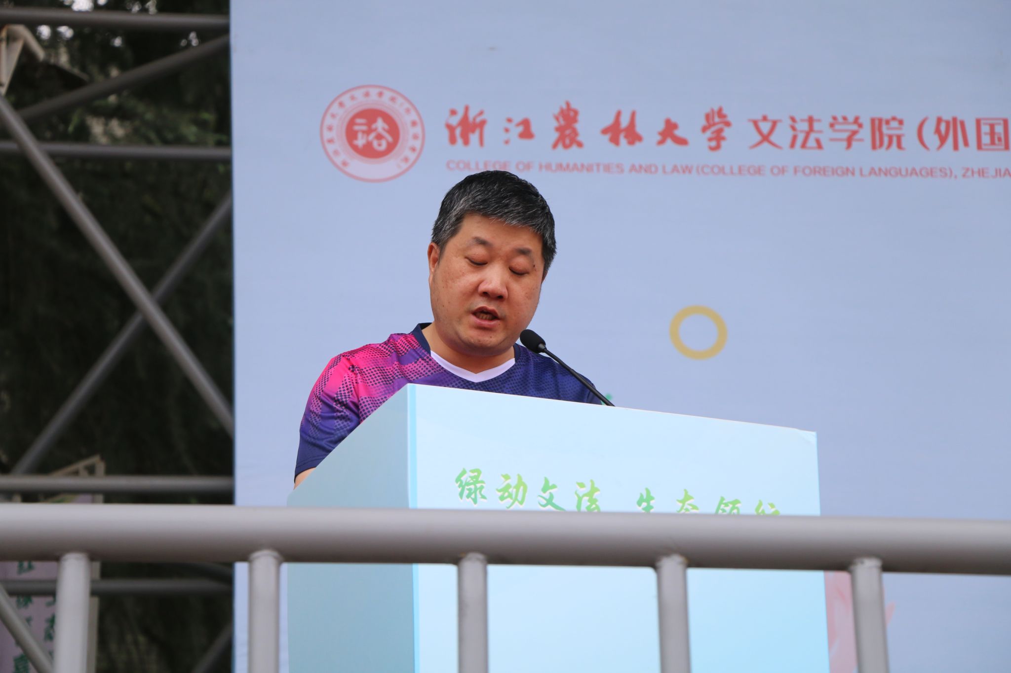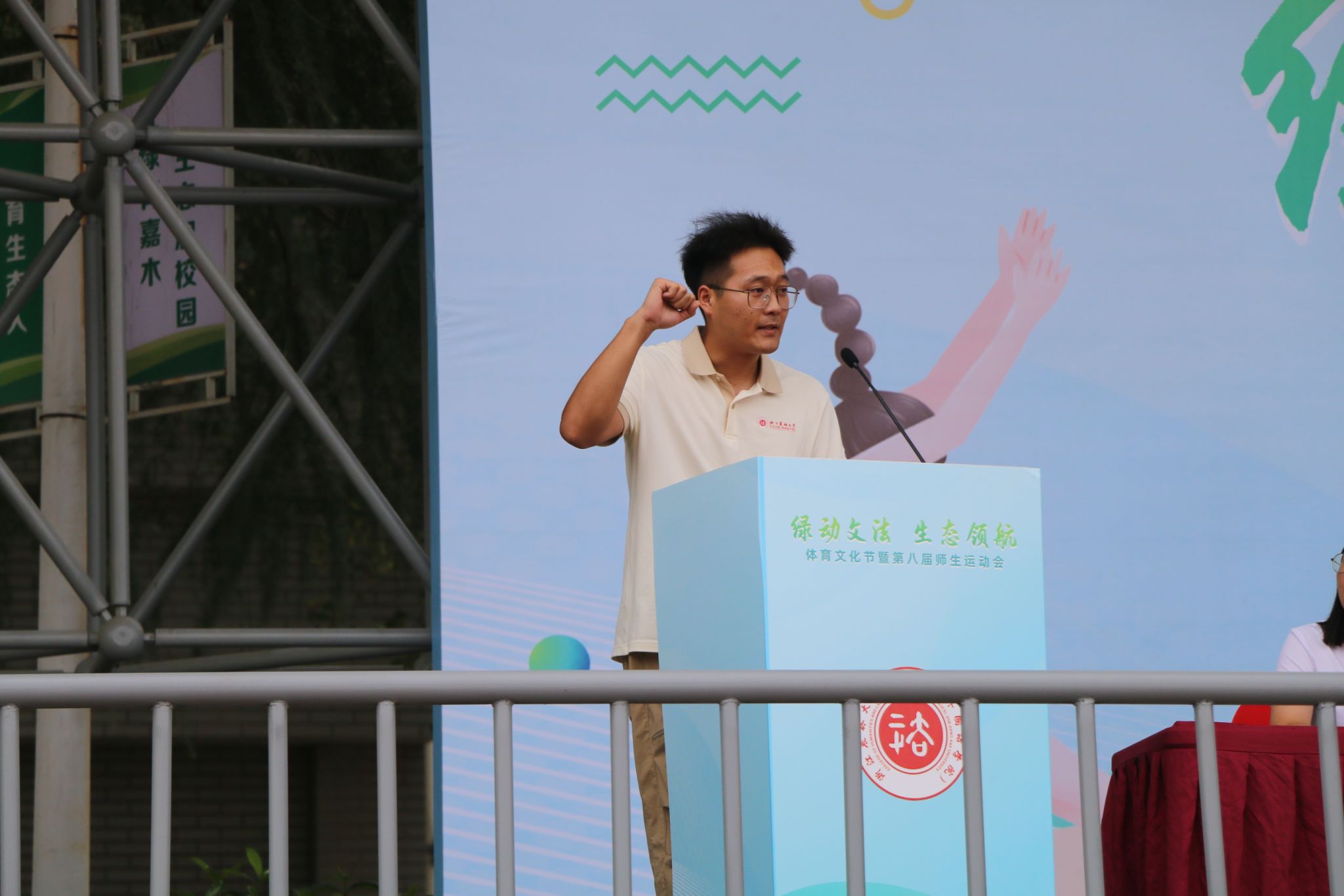 在全体师生的注视下,五星红旗伴随着庄严的国歌缓缓升起。随后院旗、院运动会旗依次入场,现场氛围庄重而热烈。 公司党委副书记(主持工作)徐达致开幕词,他肯定了公司过去一年在体育运动领域取得的优异成绩,强调了“绿水青山,运动浙江”理念,并希望文法师生能够继续弘扬“体魄竞争,奔竞不息”的运动精神,在“绿动文法”和“绿映文法”的赛道上直道而行。