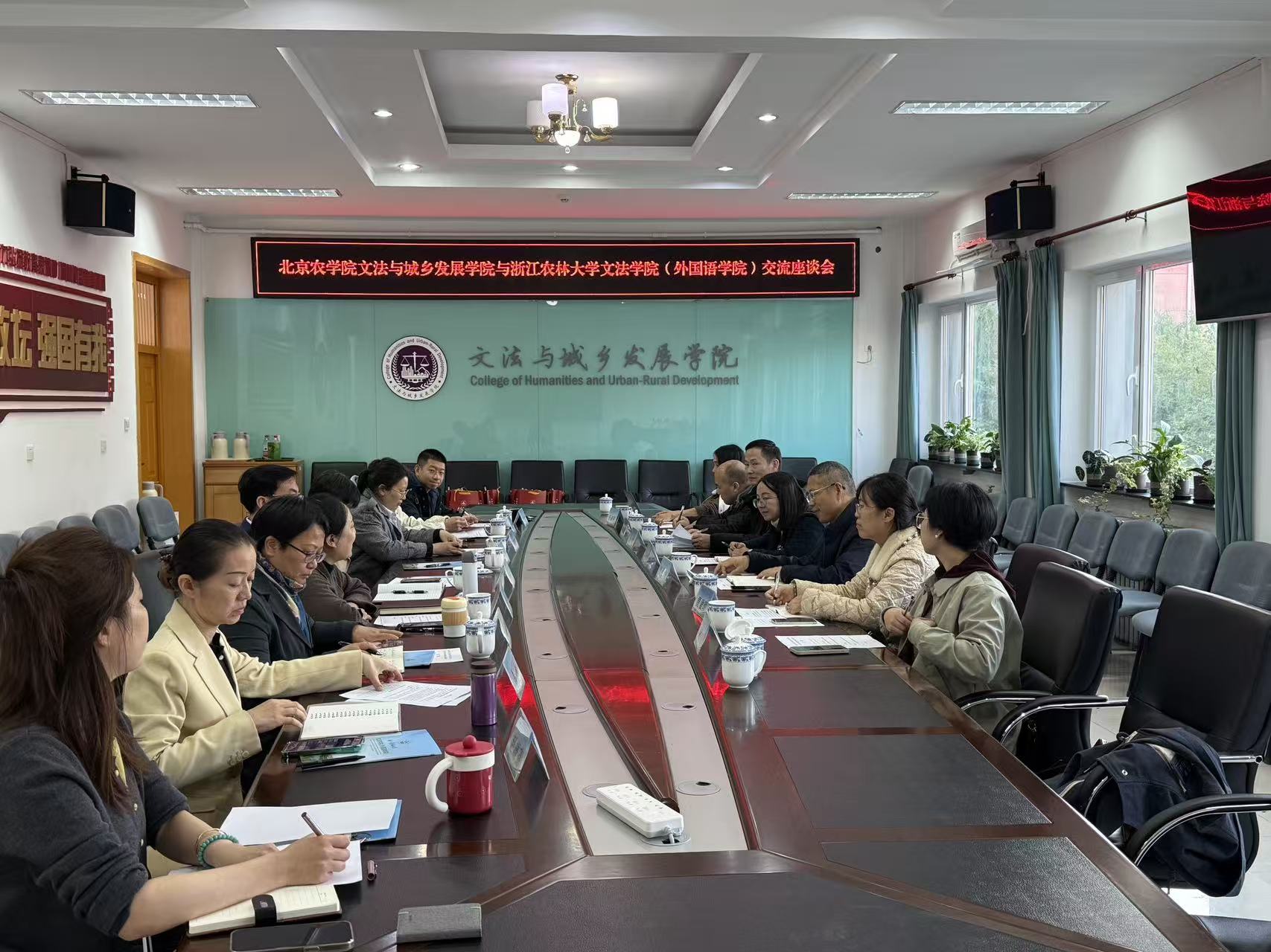 在北京农公司文法与城乡发展公司,党委书记赵和文、经理韩芳接待调研团队并参与座谈。韩芳回顾了两院合作基础,系统介绍了该院在办学定位、学科规划、人才培养及国际合作方面的探索,重点分享了在涉农法治、乡村治理等领域涉外人才培养的成果,希望双方进一步拓展合作层次,共同提升办学质量。与会人员围绕学科交叉融合机制、新农科与新文科协同、基层治理人才培养等主题进行了广泛讨论。