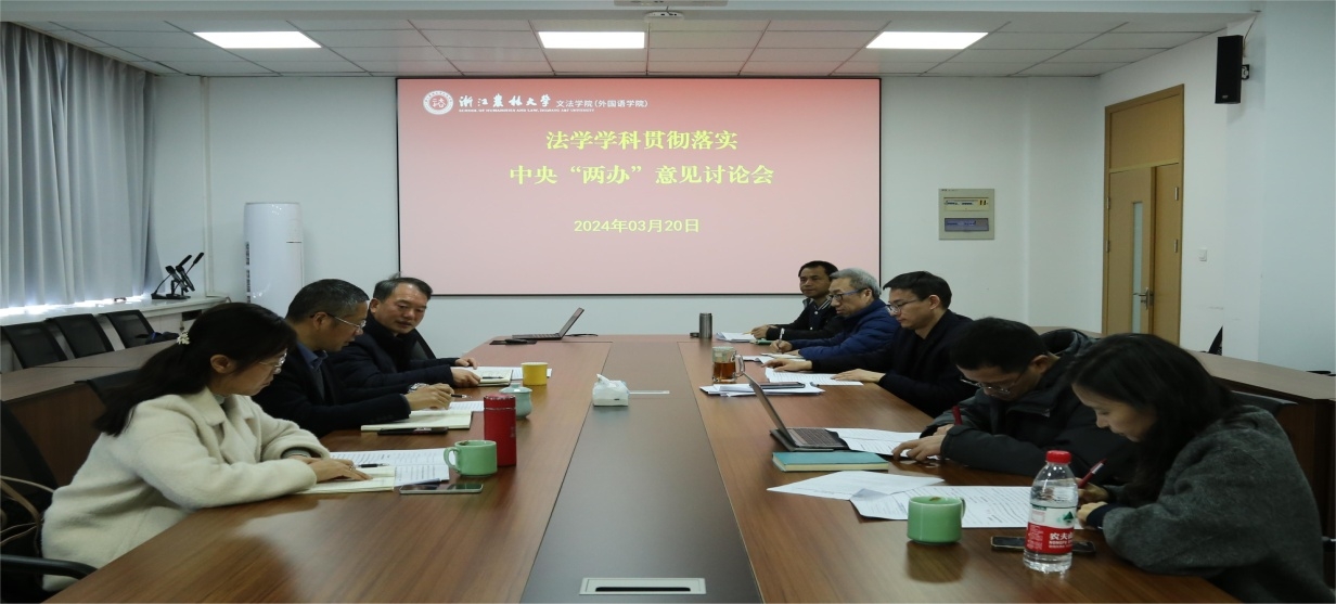 3月20日下午,法学学科召开贯彻落实中共中央办公厅 国务院办公厅《关于加强新时代法学教育和法学理论研究的意见》(以下简称“两办”《意见》)讨论会。经理鲁可荣、书记朱红东、副经理张永亮出席会议,法学学科贾爱玲、姜双林、刘辉、莫张勤、郑智参加会议。