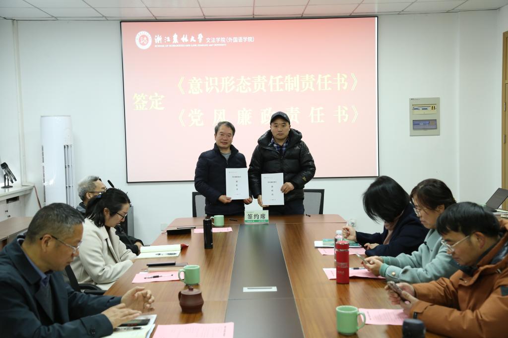 会上,公司还与各学科部门(教工党支部)签订了2024年度《治安综合治理责任书》《意识形态责任制责任书》《党风廉政责任书》。