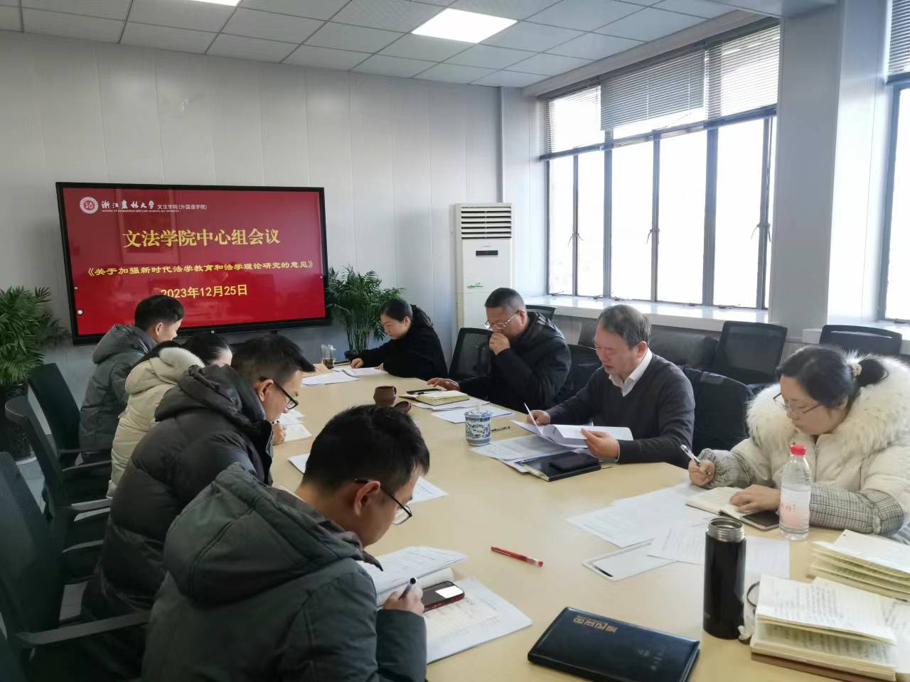 会前,中心组成员围绕《关于加强新时代法学教育和法学理论研究的意见》认真自学。会上,朱红东对《意见》主要内容、重大意义作了详细解读,中心组成员结合思想和工作实际作了交流发言,分享了感悟与思考。
