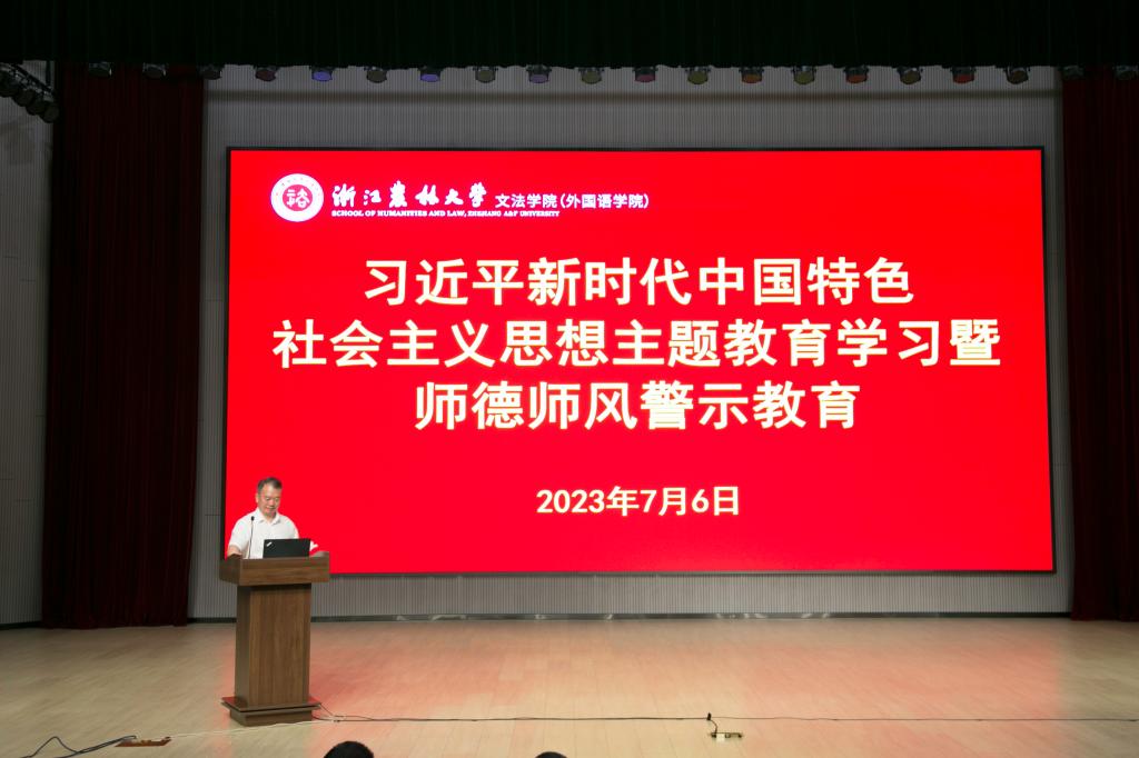 朱红东以《师德师风宣讲与警示教育案例》为题,从党的二十大关于教育的战略定位、牢记政治嘱托自觉堪当教育强国重任、高校教师师德师风有关文件及警示教育典型案例等方面,作了习近平新时代中国特色社会主义思想主题教育暨师德师风警示教育,他激励全体教职工要不断提高师德修养,增强敬业精神,争做四有好老师,要不断提高专业水平,严谨治学,争当育人大先生。