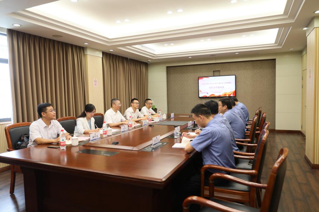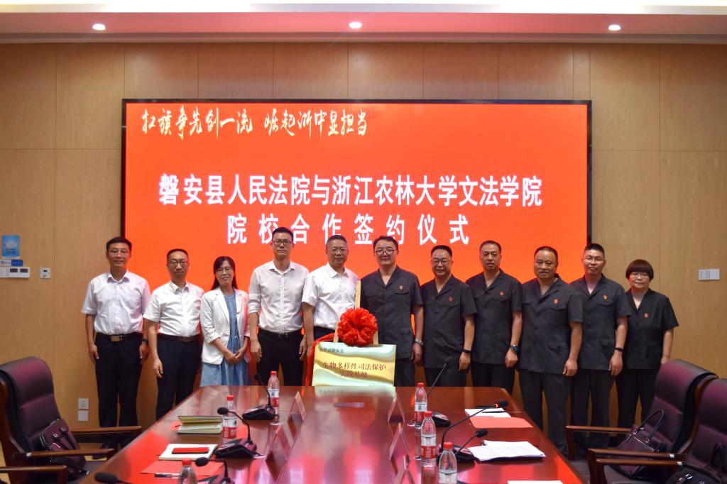 29日下午,鲁可荣经理与磐安县人民法院王军伟副经理,共同签订合作意向,并与金华市中级人民法院环境审判庭陈庭会庭长为“生物多样性司法保护”实践基地揭牌。在随后的座谈中,鲁可荣经理与对方就助力生态司法、培养法治人才进行了深入交流,希望将院校合作再提升到更高层次。