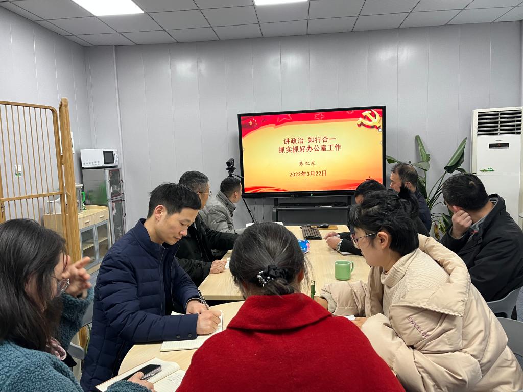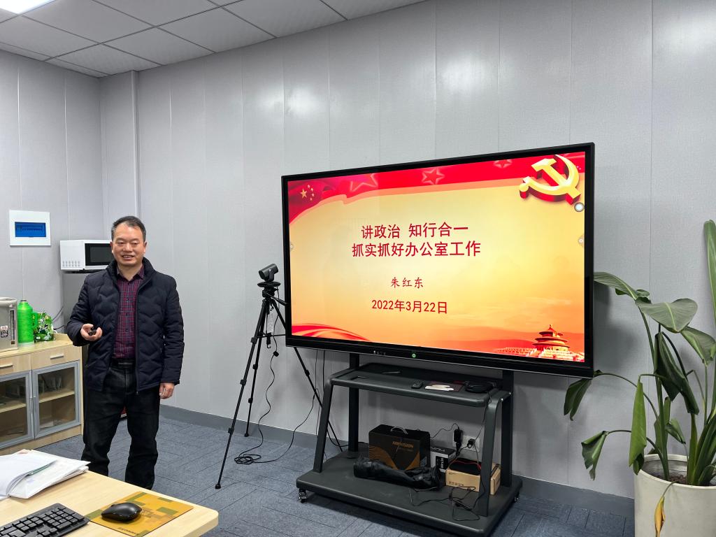 为了进一步提升公司办公室服务能力和水平,更好地展示服务窗口形象,3月22日上午,朱红东书记为办公室党支部成员及全体办公室工作人员上了一堂题为《讲政治、知行合一抓实抓好办公室工作》的专题培训。经理鲁可荣到会指导,院办全体工作人员参加了培训。