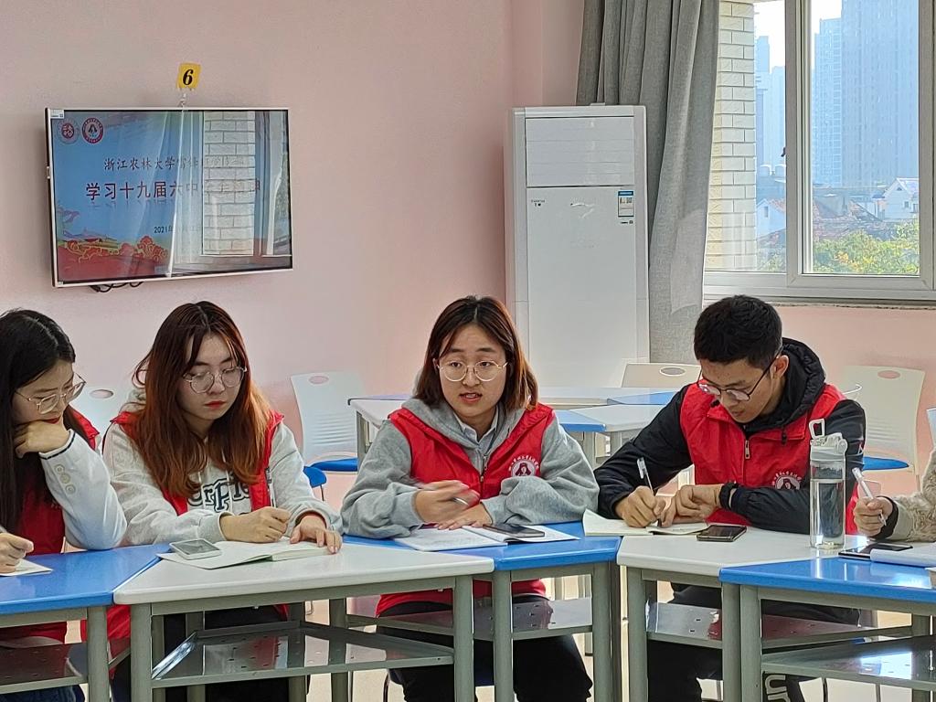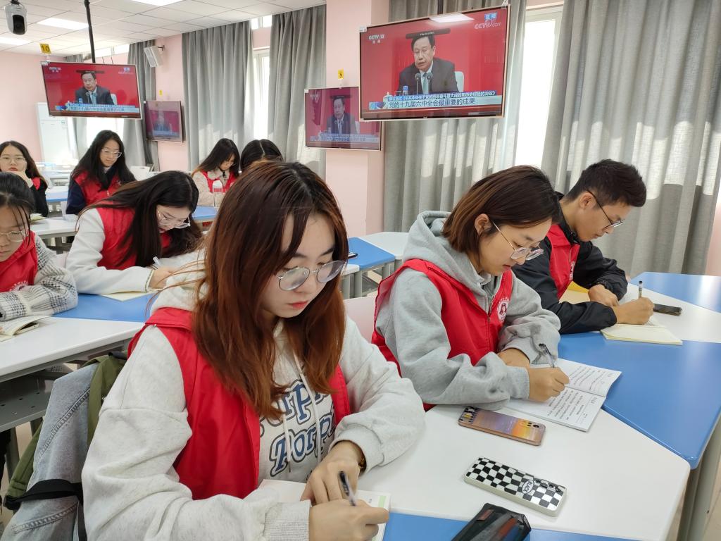 支部党员一起观看了直播十九届六中全会会议精神解读。随后,与会同志积极交流并结合自身情况分享了学习体会。交流中,党员同志纷纷发表学习感悟。文法研202班的庄亚豪说:“作为研究生党员,要强化责任担当,勇于自我革命,传承红色基因,以坚定的信仰、如磐的信念、必胜的信心,用理想信念之光照亮矢志奋斗之路。”法学195的曾雯雯说:“作为新时代的党员,我必须与时俱进,不断增强创新意识和创新能力,不断开阔自己的眼界,增强把握全局的能力,用科学的理论武装头脑,从群众中汲取营养,为实现中华民族伟大复兴贡献出自己的一份力。”