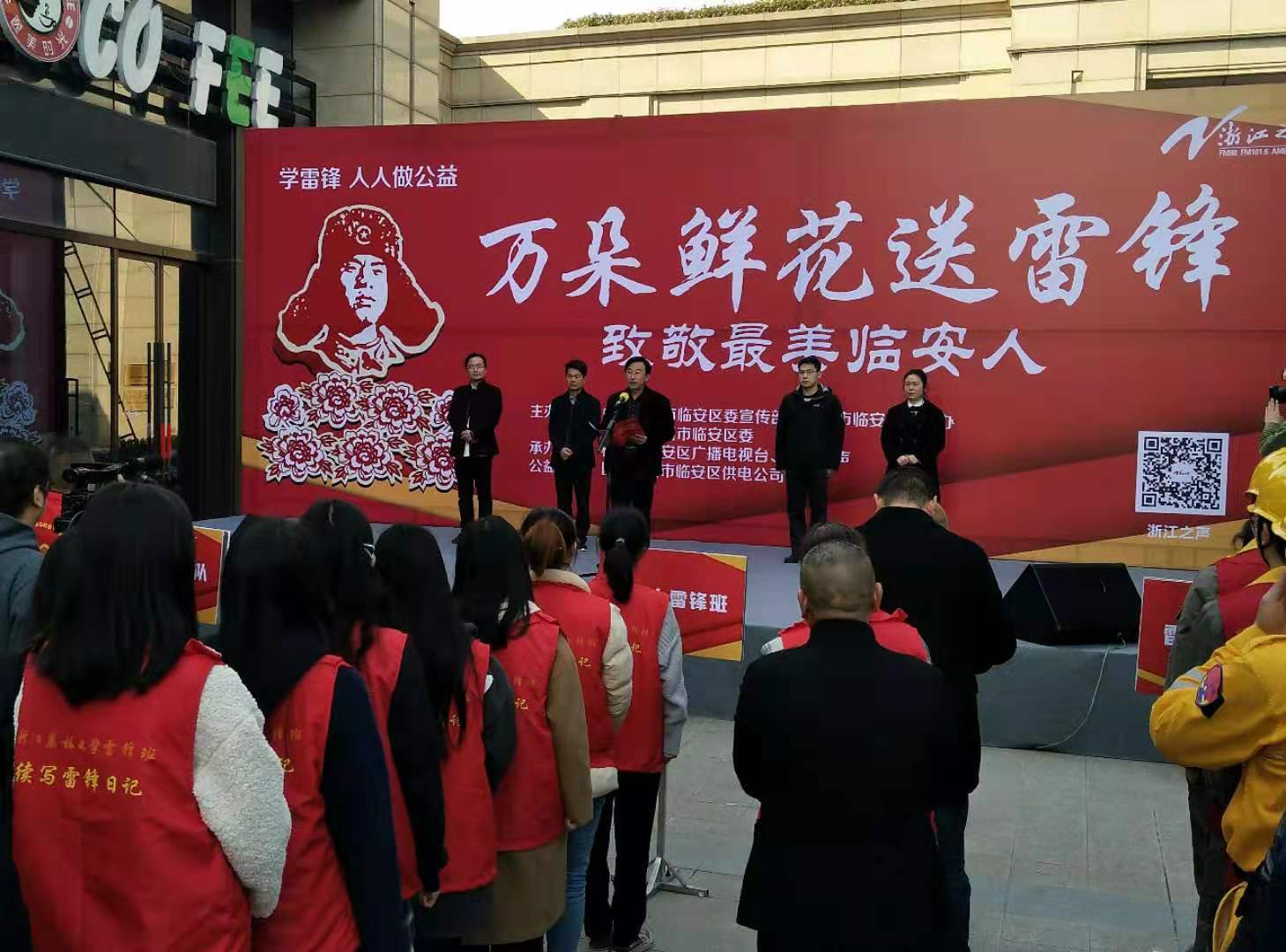 2019年3月13日上午,XC体育雷锋班成员参与了由中共杭州市临安区委宣传部、区文明办、团区委、区广播电视台联合开展的2019“万朵鲜花送雷锋”致敬最美临安人集体送花仪式。