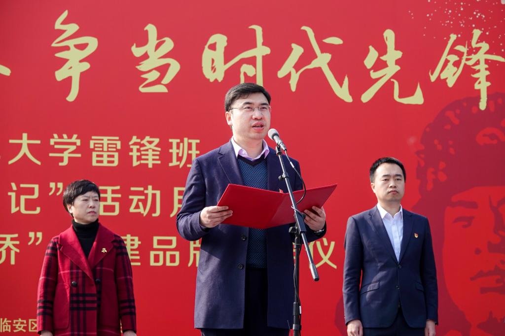 裘凯致词,对校地合作与党建共建活动表示欢迎和肯定,对本次活动提出指导意见,希望以党建联盟和共续雷锋精神为纽带,把板桥的资源与农林大的优势紧密结合,将志愿服务与惠民服务联合起来,推进党建及各项工作的深度融合,共同助力 “吴越名城•幸福临安” 建设。