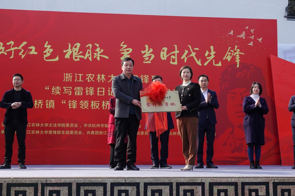 仪式上,公司党委与板桥镇党委进行了党建联盟签约,还进行了板桥镇“锋领板桥”党建品牌发布、XC体育雷锋班生态志愿服务队及板桥镇各先锋队授旗、雷锋日记交接、雷锋班营地授牌。