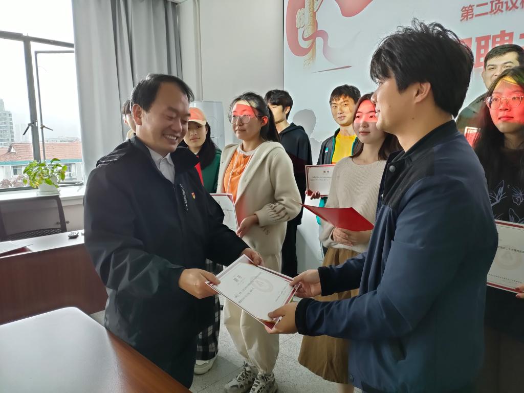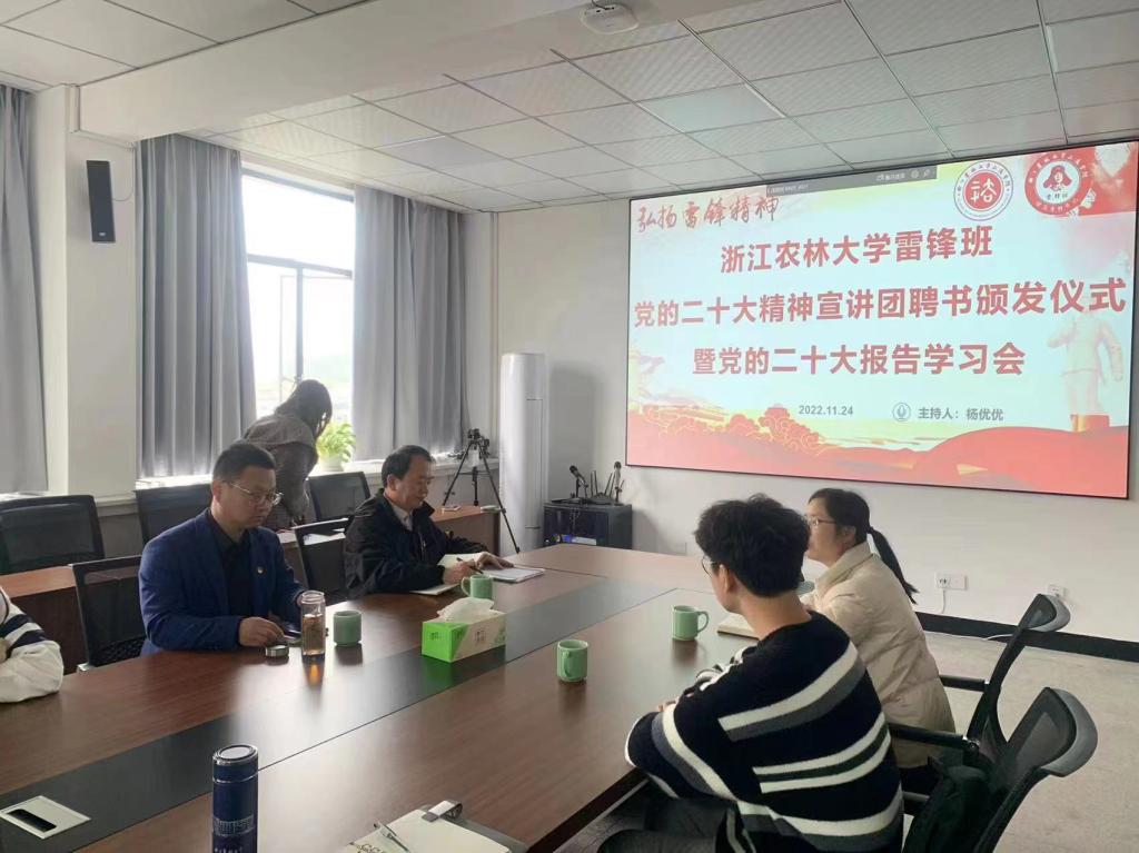 学习贯彻党的二十大精神XC体育雷锋班宣讲团聘书颁发仪式暨党的二十大报告学习会于11月24日在衣锦校区实验大楼612开展。公司党委书记朱红东,公司党委副书记潘军可出席本次活动,雷锋班党支部书记、员工办主任杨优优,雷锋班宣讲团成员参加。