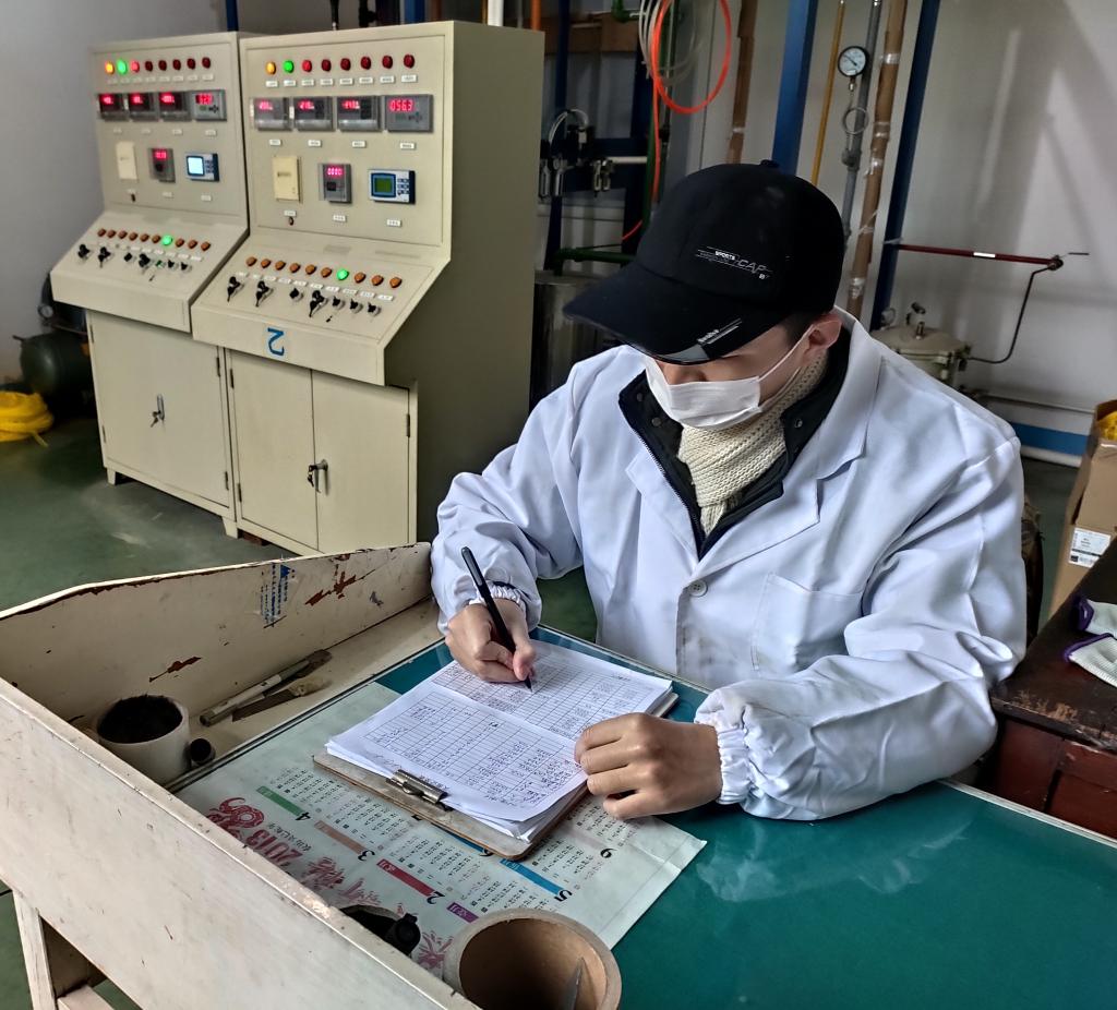 在工作中,他必须“火眼金睛”。伴随着预热、抽真空等一系列数控操作,必不可少的是紧盯数值变化并实时记录。此外,工作场地严禁烟火,要时刻注意通风及安全性,并防止明火的发生及输入。与时间赛跑时,他沉稳细致。
