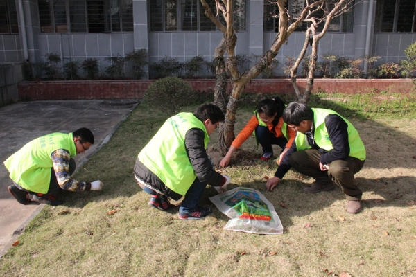 2016年2月27日下午,值此新学期即将开学之际,法政公司绿地管护工作在衣锦校区率先启动。公司党总支书记兼副经理李勇华亲临现场指导,公司党总支副书记黄晓芳、分团委书记宋春春和10多名“雷锋班”同学一起进行了新学期首次绿地管护工作。
