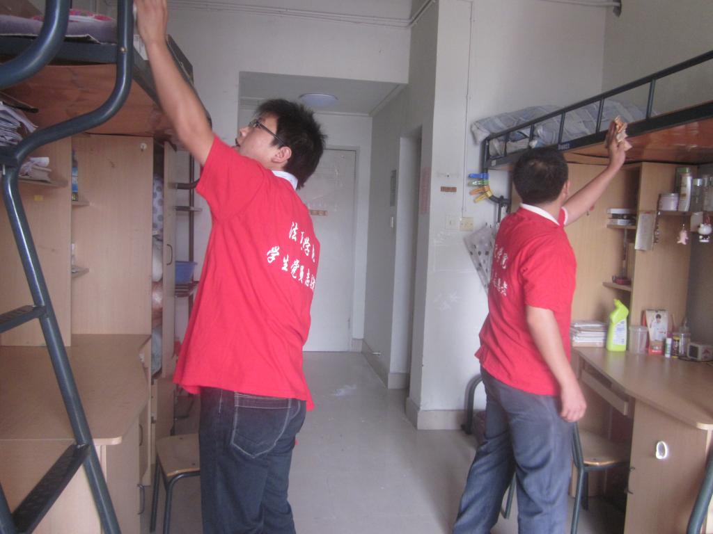 寝室文明建设之初,当雷锋班同学了解到有个别研究生毕业班寝室成员因在外实习无法进行寝室卫生打扫以及部分在校同学寝室卫生间、阳台和门窗不易打扫等情况后,雷锋班成员在征得相关寝室同意后在辅导员和班委的带领下来到部分无人寝室,对寝室进行了全方位的认真仔细地打扫;对在校员工寝室卫生间、阳台和门面不易清洁部位送去了相应的清洁用品,并热心指导和帮助他们进行清洗。将雷锋热心助人和无私奉献的精神认真学习实践,切实做到洁净寝室和温暖人心,为文明寝室建设推广工作贡献了自己的一份力量,使雷锋精神在寝室间得到了传承和发扬。
