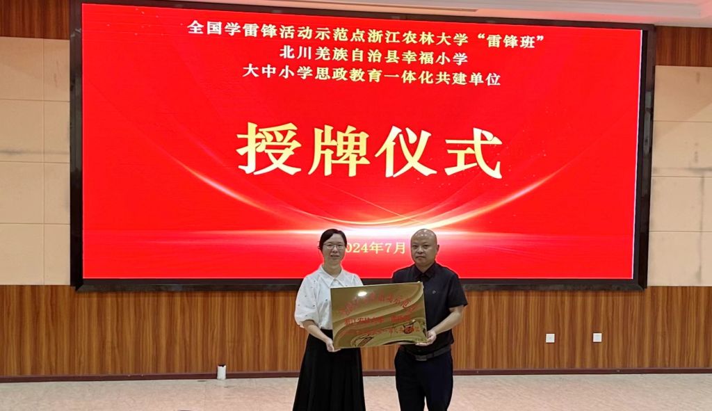 7月21日,XC体育雷锋班实践基地、XC体育雷锋班与北川羌族自治县幸福小学大中小学思想政治教育一体化共建单位的授牌仪式在幸福小学报告厅举行。幸福小学党总支书记唐荣生、董事长张斌、关爱办主任朱虹、XCSport农村发展硕士点负责人蒋培、雷锋班党支部书记杨优优及相关师生代表参加活动。