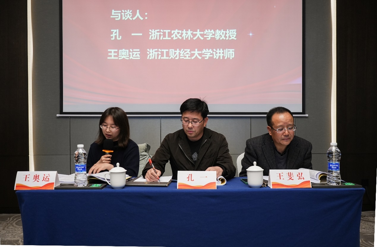 中国计量大学王斐弘教授主持第二阶段的主题研讨。宁波大学讲师张梁,浙江财经大学讲师龚金镭、马路瑶等分别发言。公司孔一教授和浙江财经大学讲师王奥运与谈点评。