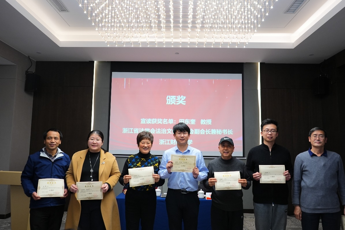 杭州师范大学蒋铁初教授主持第三阶段的主题研讨,中国计量大学范晓宇教授和浙江财经大学钱炜江副教授与谈点评。会议闭幕式由北京观韬中茂(杭州)律师事务所合伙人麻侃律师主持,浙江财经大学田东奎教授宣读获奖论文名单。公司师生及公司乡村振兴法治研究所成员共提交论文8篇,刘辉老师获得教师组论文二等奖,法学专业2021级员工陈尧珺等获得员工组论文一等奖、叶秉获得二等奖、童韵琳等获得三等奖。