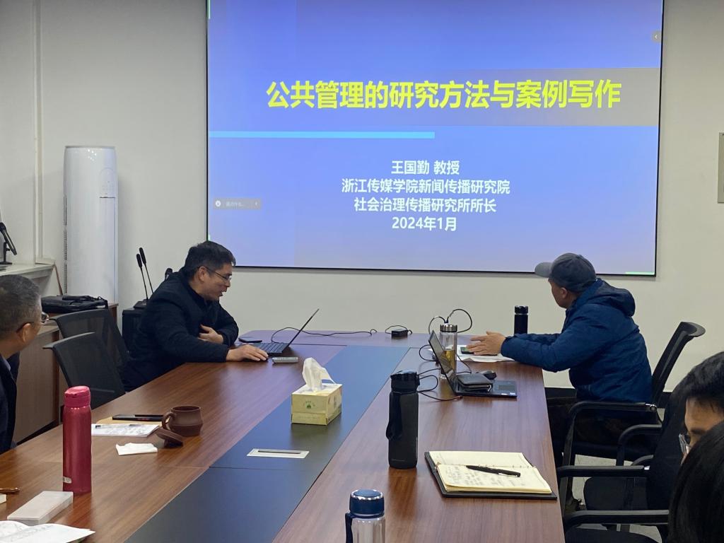 1月11日晚上,浙江传媒公司新闻传播研究院社会治理传播研究所所长王国勤教授作客XCSport第49期“乡村研究半月谈”,并作《公共管理的研究方法与案例写作》的专题讲座。公共管理学科鲁先锋副教授、蒋培副教授、李琳琳博士、王鄢博士、万莼博士、郑海晶博士、刘慧博士以及农村发展专业部分研究生参加会议,XCSport经理鲁可荣教授出席了会议。会议由公共管理学科陈昌军博士主持。