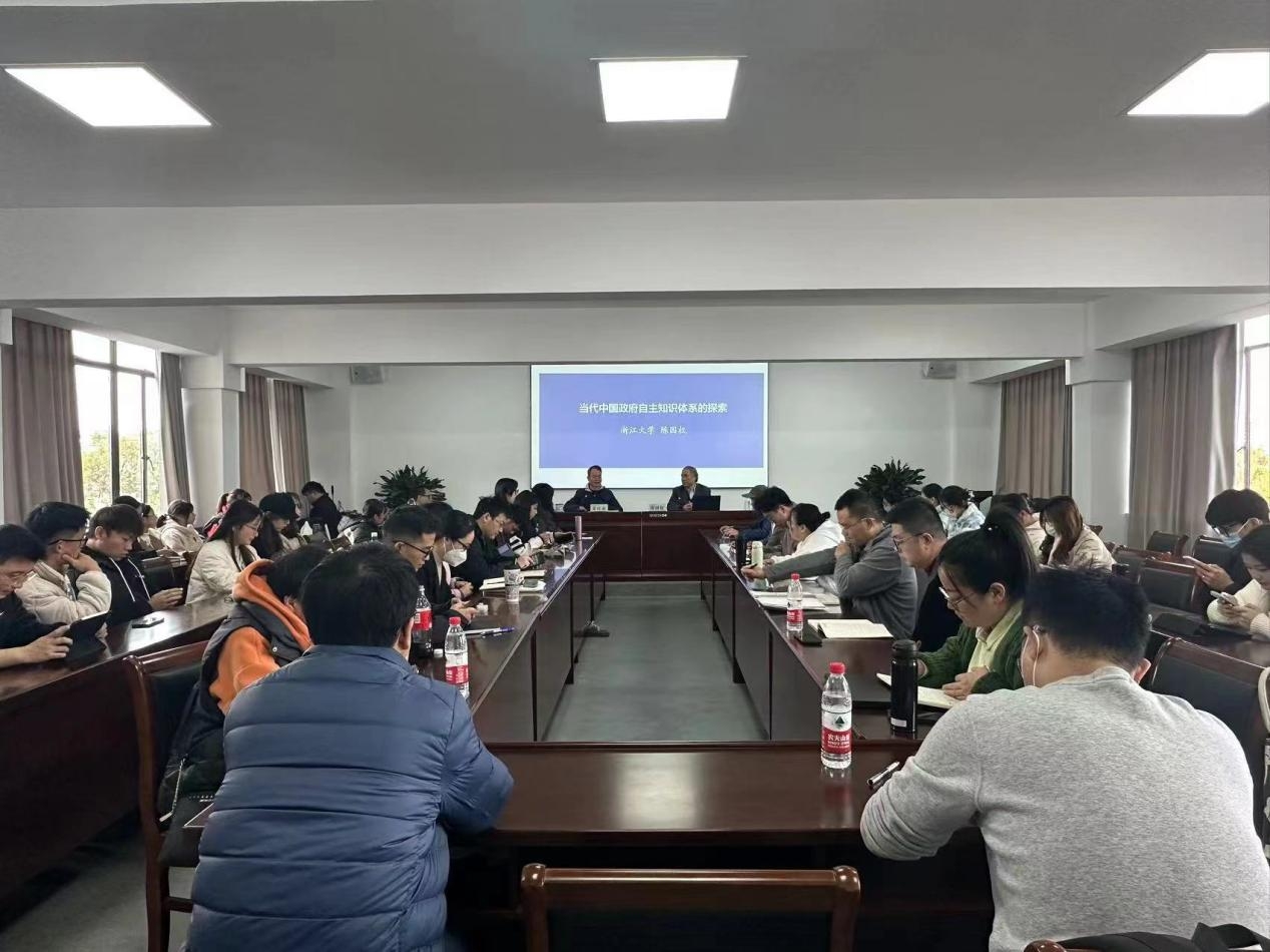 11月29日,青山湖讲坛第39讲暨乡村研究半月谈第46期讲座顺利举行,特邀浙江大学求是特聘科研岗教授、浙江大学中国地方政府创新研究中心主任陈国权教授作题为“当代中国政府自主知识体系的探索”的学术报告。
