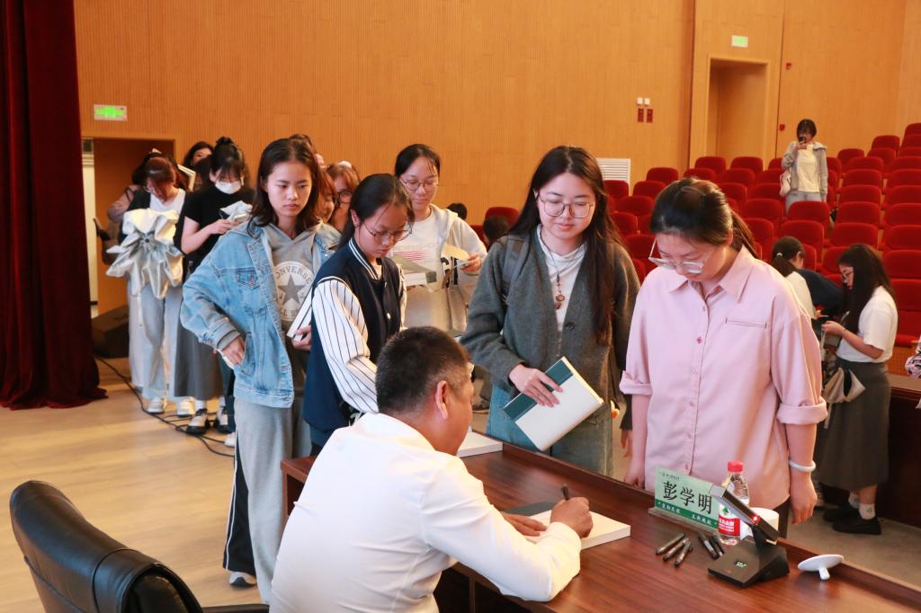 讲座后,彭学明老师与在座师生互动交流,并签名赠书。