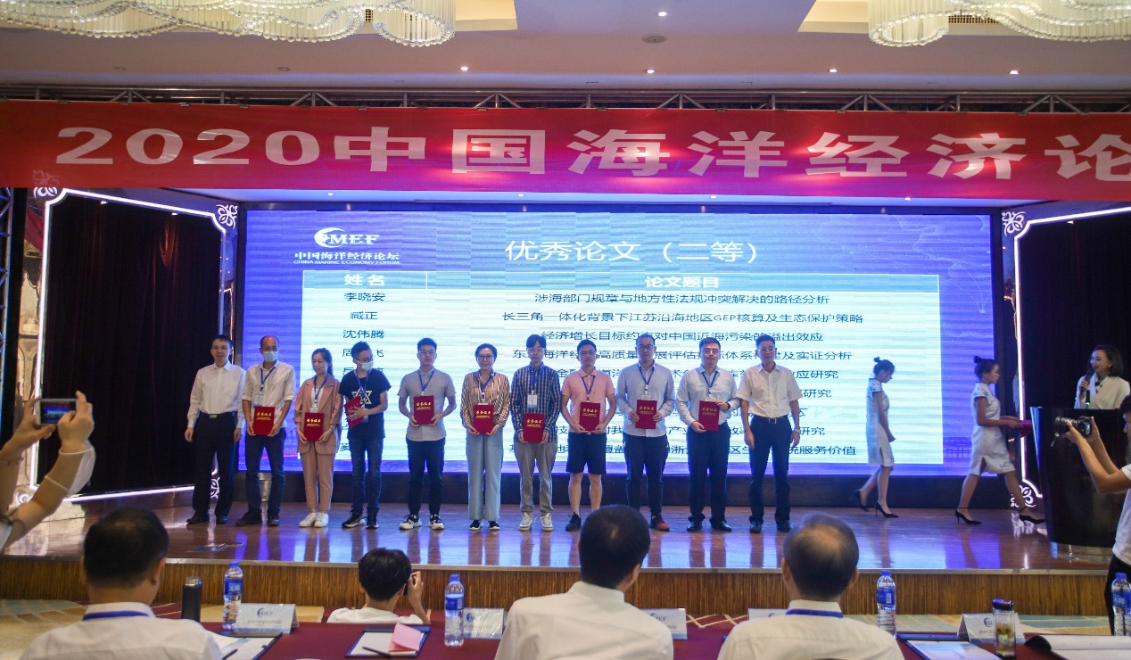 本次论坛还面向全国海洋经济研究人员进行了优秀论文评选活动,共评选出一等奖五篇,二等奖论文九篇,三等奖论文十三篇,以鼓励和支持有潜力的青年学者。公司环境法研究生沈秋豪同学(陈真亮副教授指导)撰写的学术论文荣获本次论坛优秀论文二等奖,并在“海洋文旅与法制”平行论坛中做专题发言。沈秋豪在论文和报告中建议浙江省应自觉扛起建设海洋强国、海洋治理体系与能力现代化“重要窗口”的使命担当,长三角区域应完善生态文明建设区域联动机制和陆海统筹的环境治理体系,为区域海洋生态环境治理提供可供参考的浙江经验与样本。