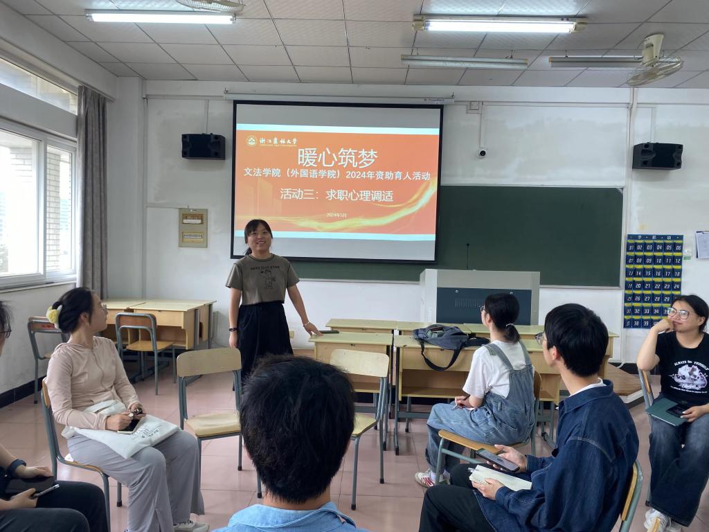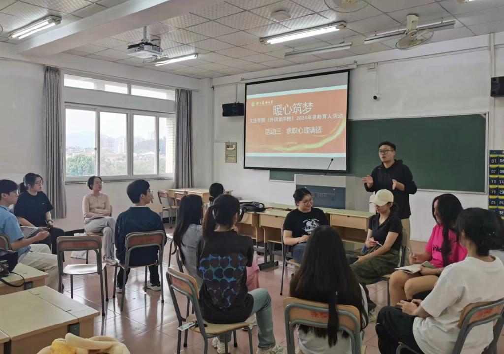 5月23日下午,“暖心筑梦”XCSport2024年资助育人活动之求职心理调适活动,在衣锦教学主楼510,面向大三员工开展。