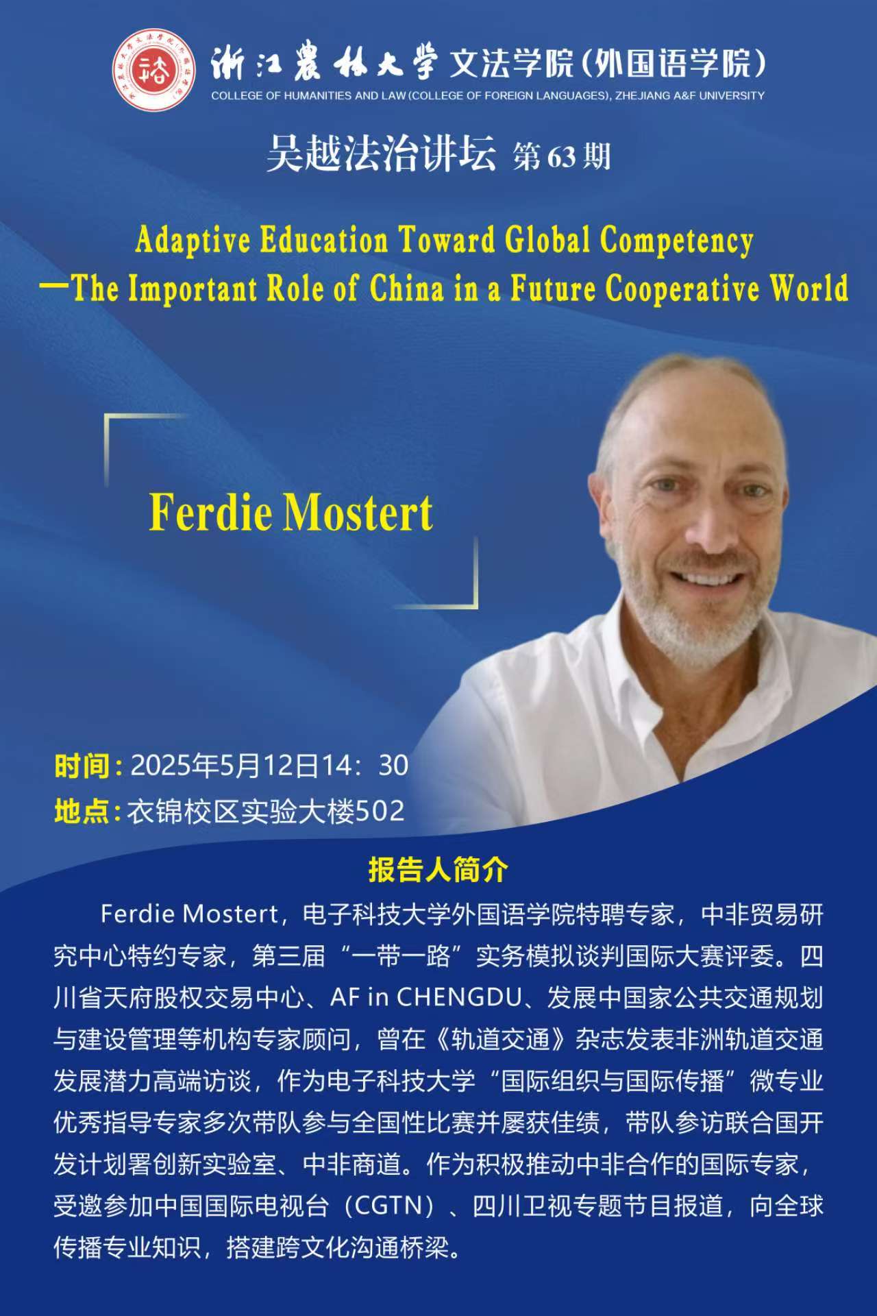 吴越法治讲坛第63期:Adaptive Education Toward Global Competency—The Important Role of China in a Future Cooperative World